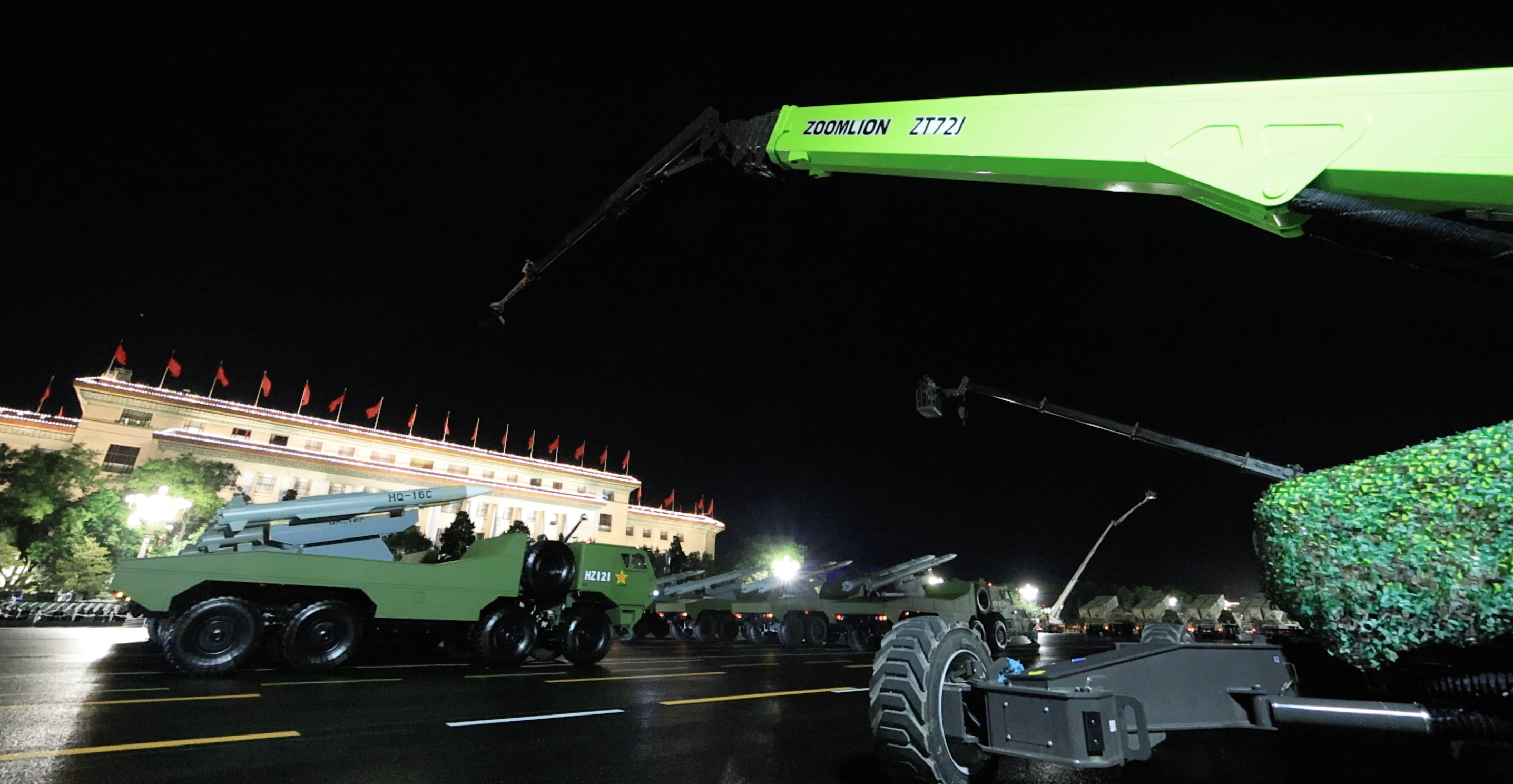 为助力九三阅兵现场直播,中联重科出动13台高端装备,团队现场驻守90天,反复模拟演练,以便让摄像师以更精准的视角,拍摄到更震撼人心的现场画画。