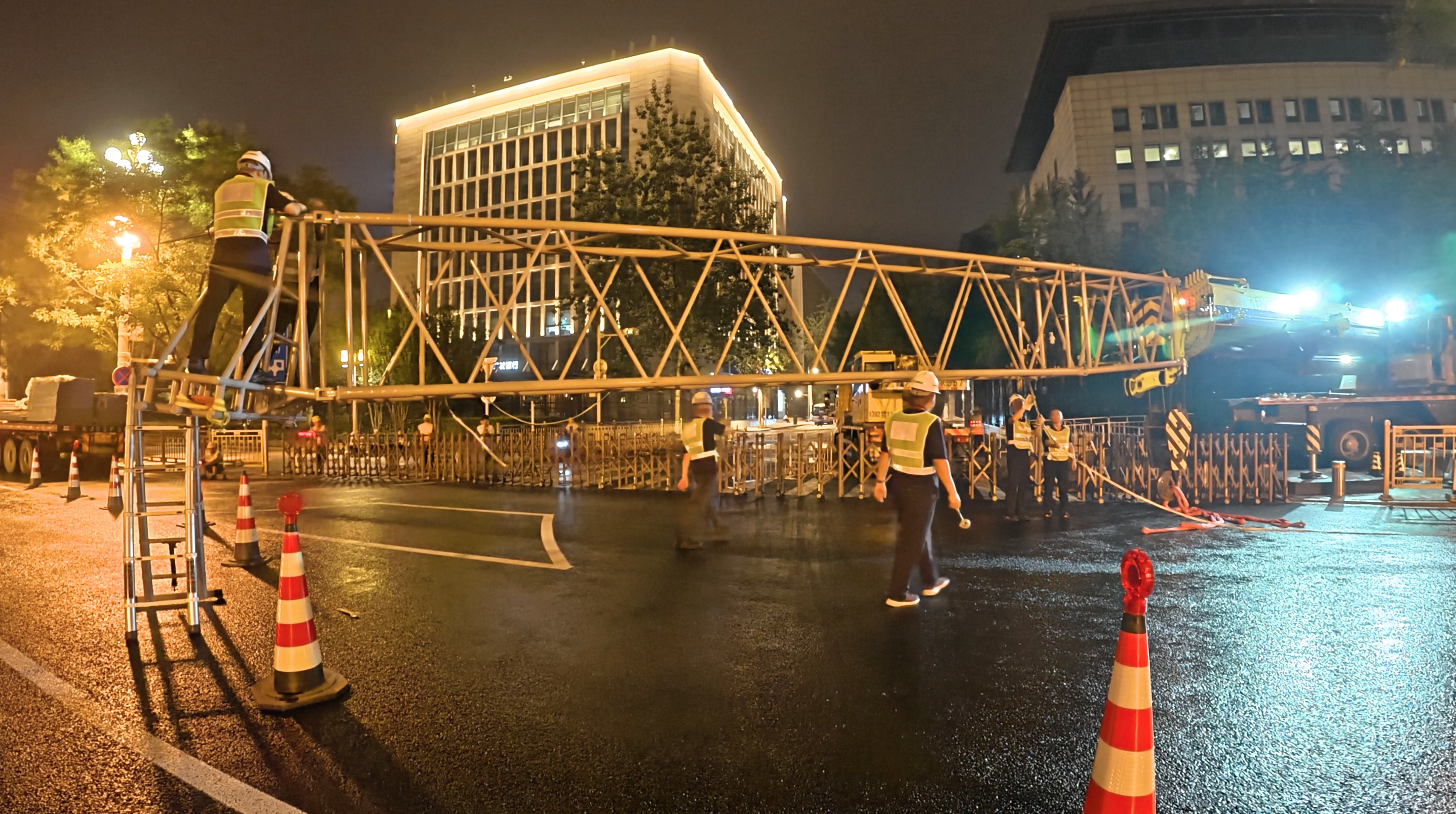 一是空间限制。天安门广场及长安街是核心管制区,庞大的拍摄举高车、线缆盘、设备箱的摆放位置必须精确到厘米。