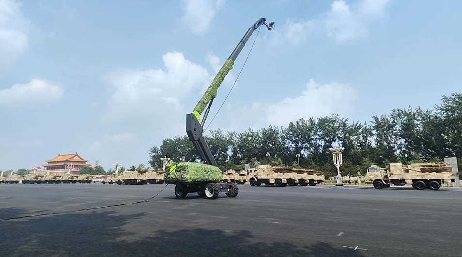 为完成央视各系统除索道外的高点摄像机位搭建任务,中联重科此次共派出了7台高空作业设备,包括ZT72J两台,ZT32J两台,ZT22J三台,最高的达72米,所有设备均是为此次阅兵直播特别定制。