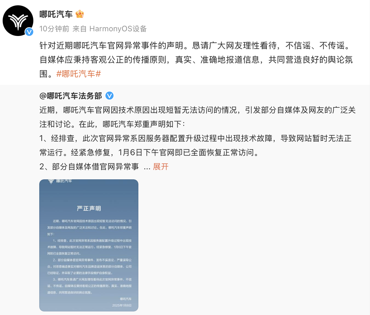 哪吒汽车:恳请广大网友理性看待近期哪吒汽车官网异常事件启运配资哪吒汽车:恳请广大网友理性看待近期哪吒汽车官网异常事件