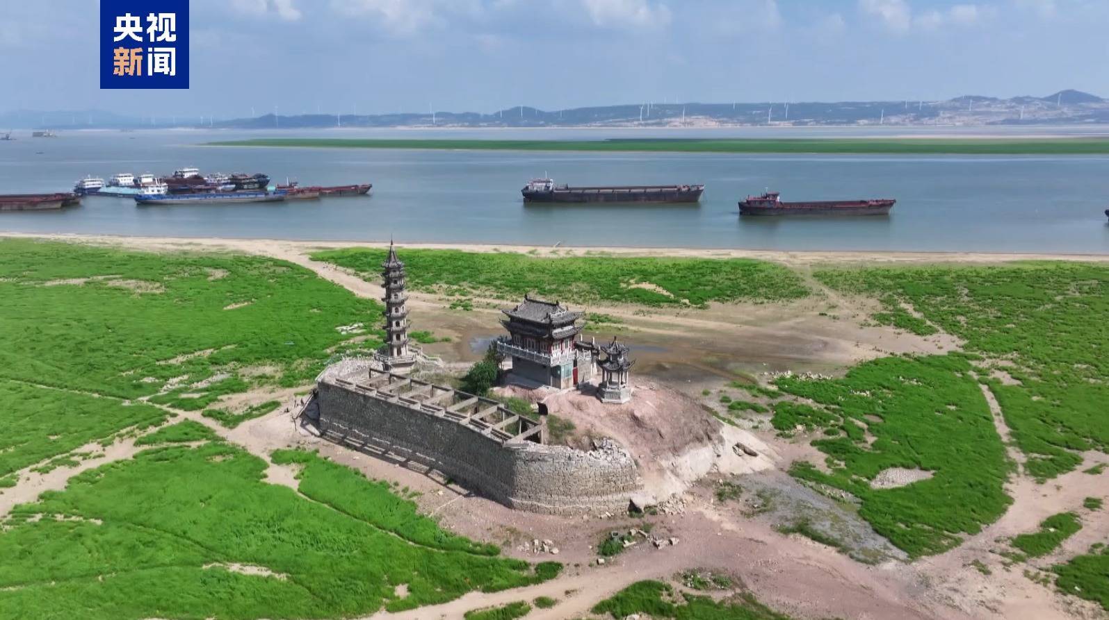 受持续晴热高温天气影响,连日来峪科配资,我国最大淡水湖鄱阳湖水位持续下降,提前进入枯水期。临岸干涸的湖底长出了绿草,航拍湖区标志性古迹落星墩已完全露出全貌。